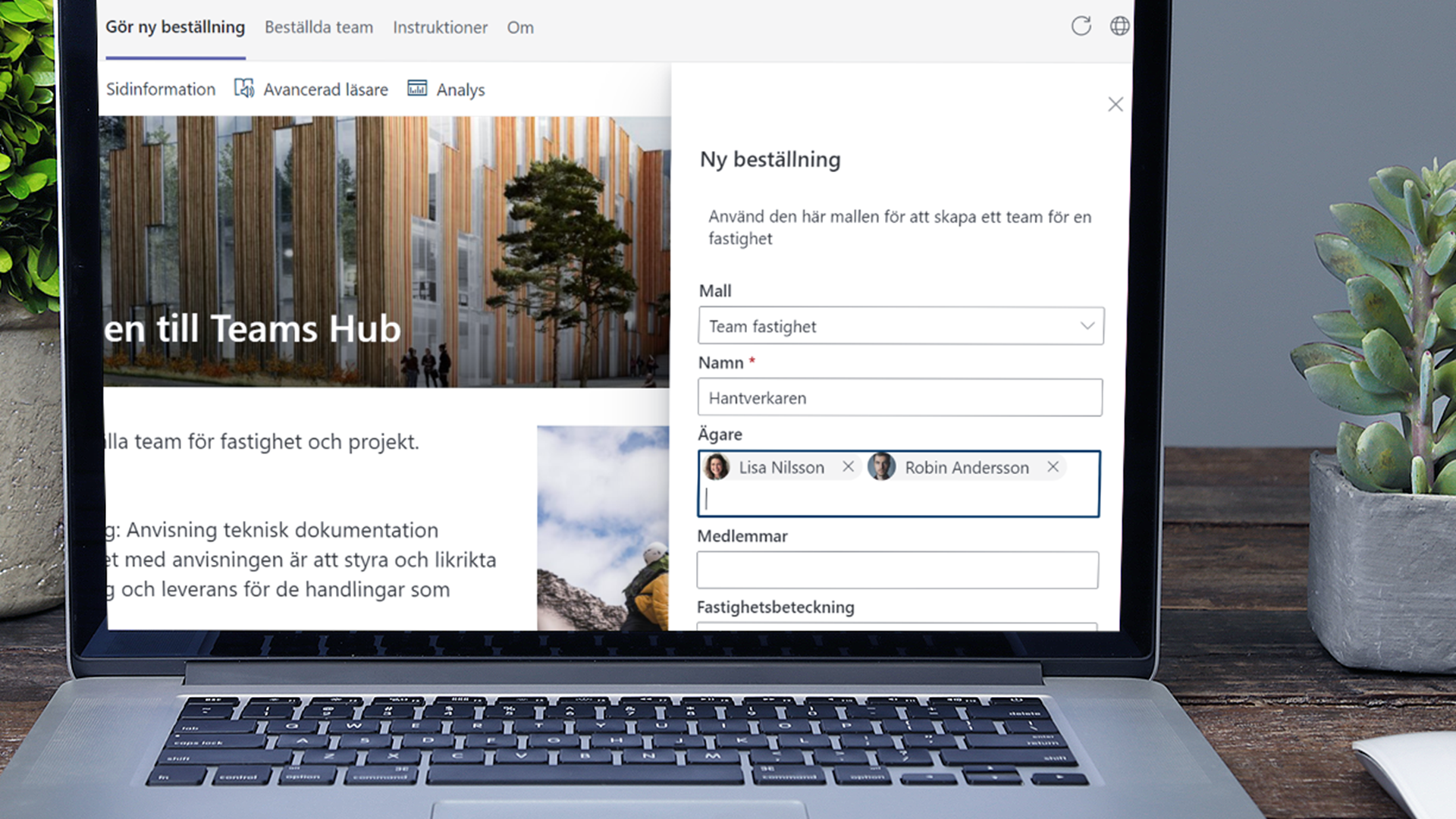 Vi har valt att utveckla Fastighetsportalen i Microsoft Teams som en lösning för att samarbeta kring era fastigheter.